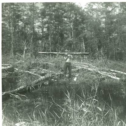 The best times were scaring tourists and fisherman. We would cut down Cypress tress for wood Leon needed. He raised orchids and the logs we cut were cut lengthwise to be turned into planters. Spacers between the halves were added as well as a screen bottom. Then a bedding material was added and small orchids were planted. The log planters were then placed in the swamp.